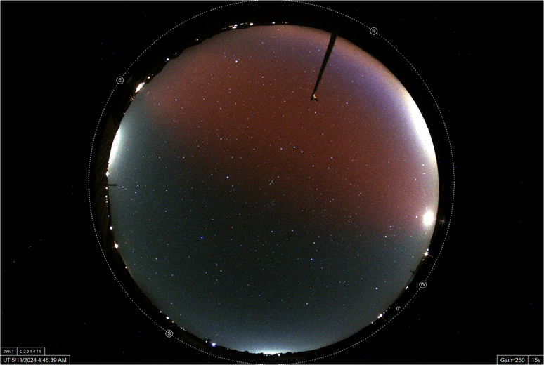 Alcor All Sky view of Aurora on May 10, 2024 at 11:16 pm MST |